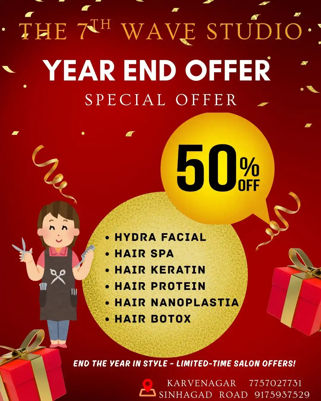 The 7th Wave Studio Year End Offer Special Offer 50% Off End The Year In Style – Limited-Time Salon Offers! Karvenagar 7757027731 Sinhagad Road 9175937529