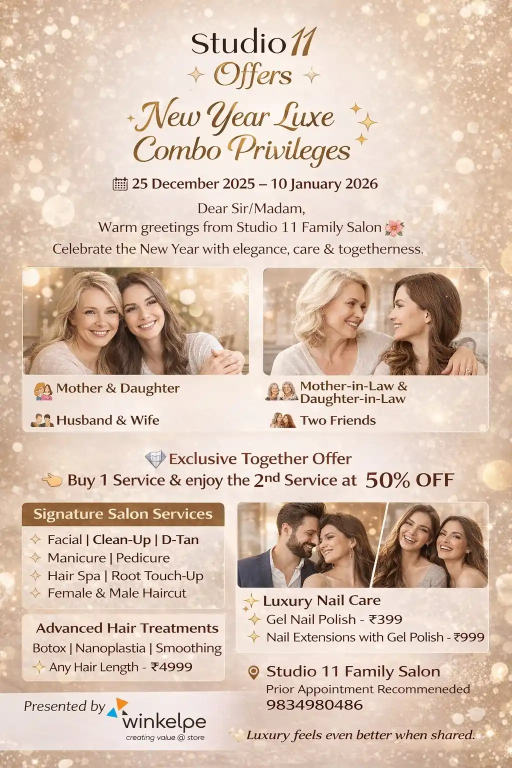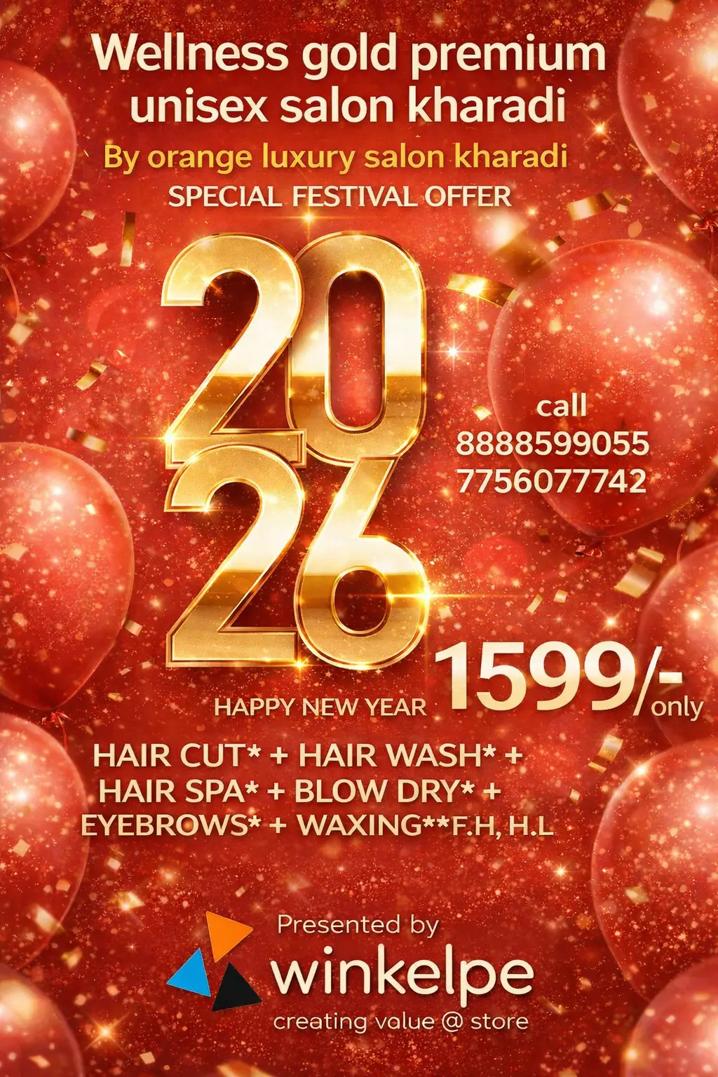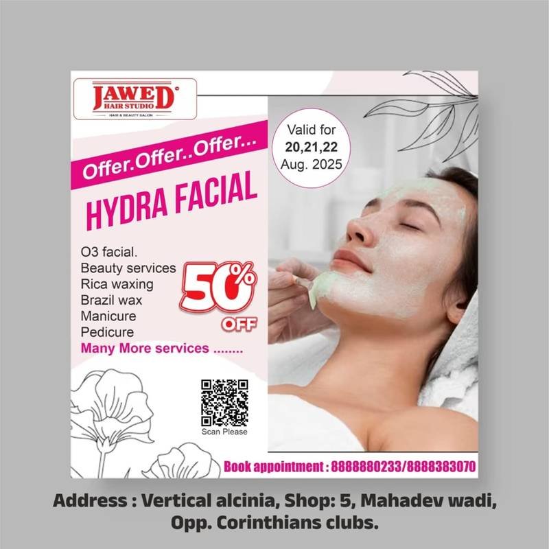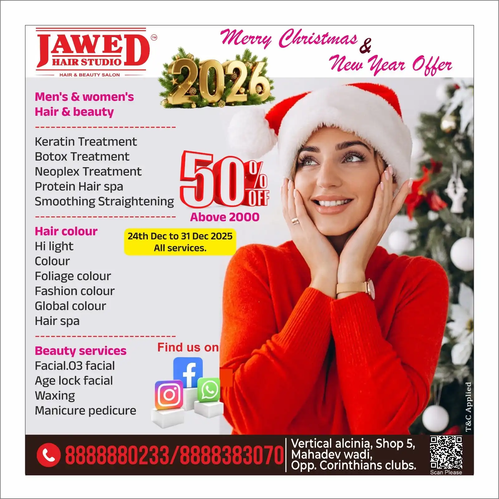 JAWED HAIR STUDIO Hair & Beauty Salon Merry Christmas & New Year Offer 2026 - 50% OFF Above Rs.2000 On 24th Dec to 31st Dec 2025 T&C Applied Call Us: 8888880233 / 8888383070