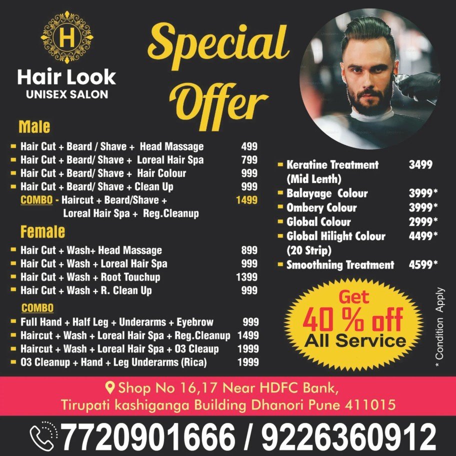 Hair Look Unisex Salon Special Offer - Get 40% off All Service *Condition Apply