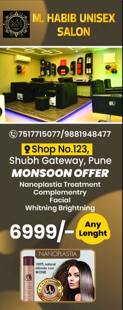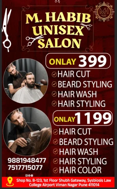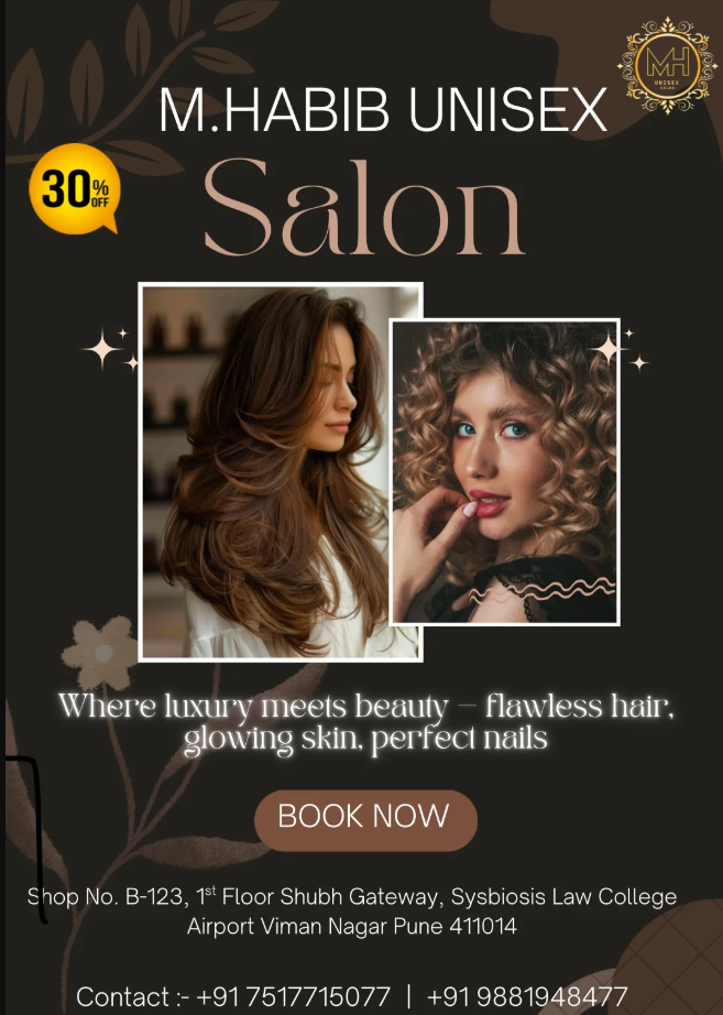 M. Habib Unisex Salon Special Offer 30% OFF BOOK NOW Contact: 91 7517715077, 91 9881948477