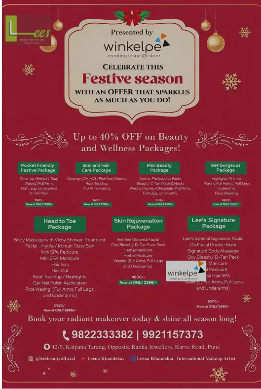 From the House of Salon Apple 1993 SALON COMPANY Festive Radiance Package! Offer At Rs.4000 Contact: 1800 274 0401