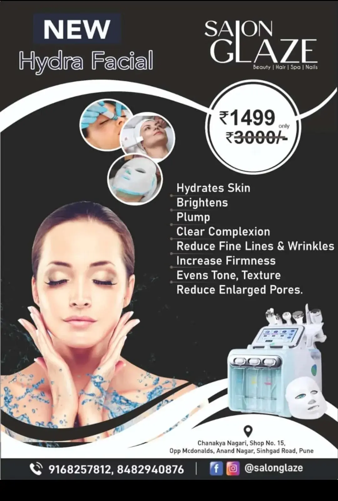 NEW Hydra Facial Rs.1499 only Benefits: Hydrates Skin, Brightens, Plump, Clear Complexion, Reduce Fine Lines