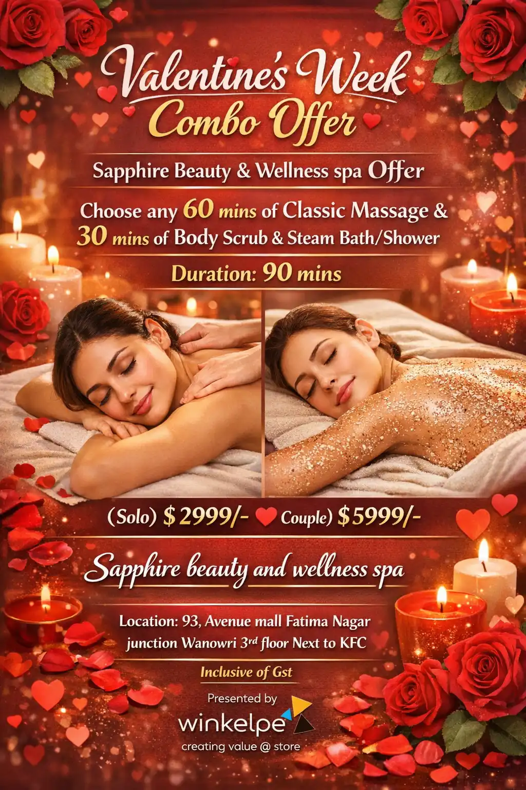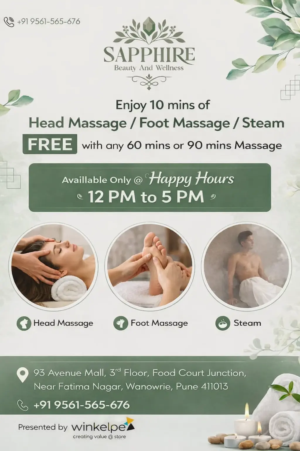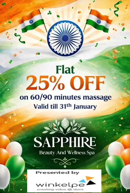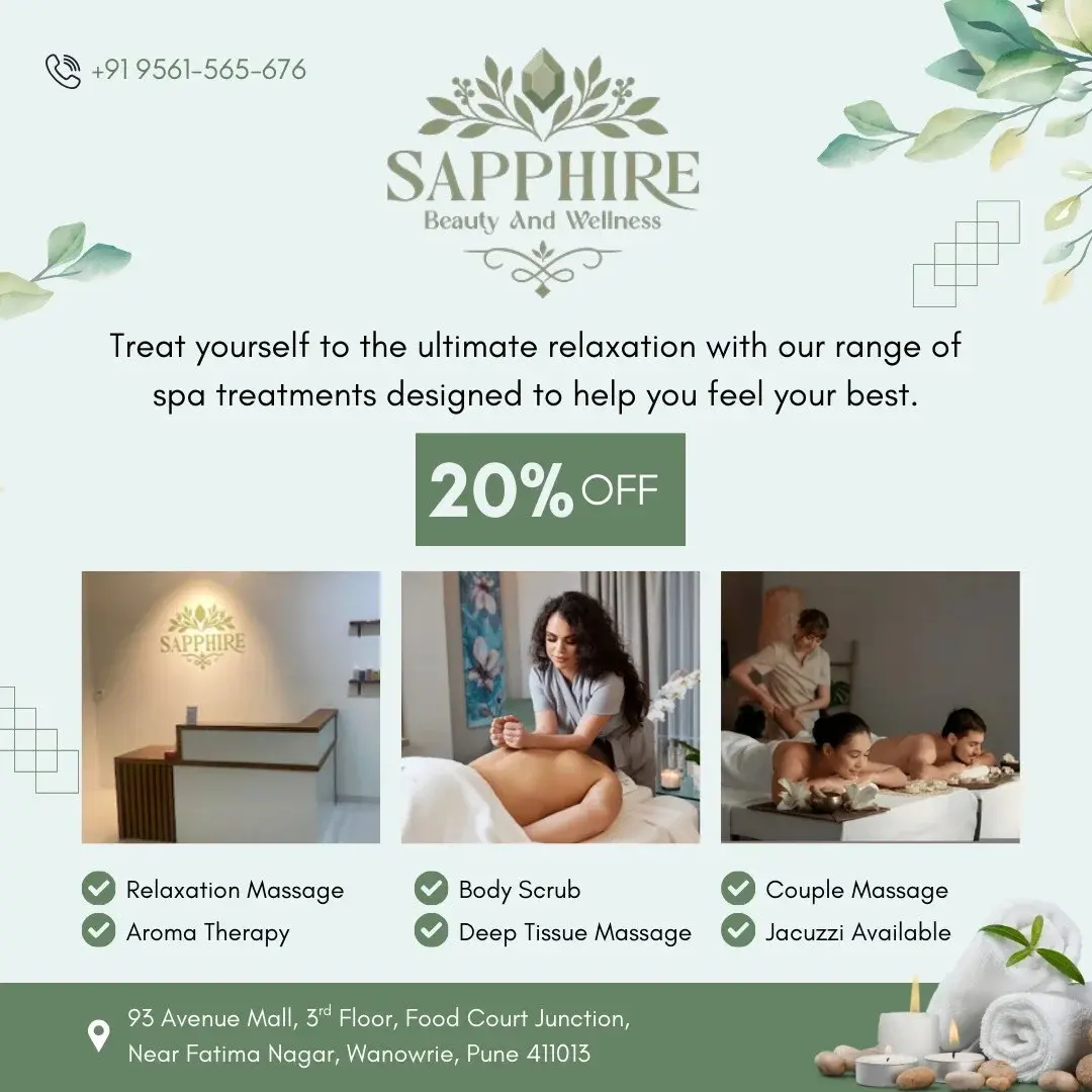 Sapphire Beauty And Wellness Offer 20% OFF on Services: Relaxation Massage, Aroma Therapy, Body Scrub, Deep Tissue Massage, Couple Massage, Jacuzzi Available