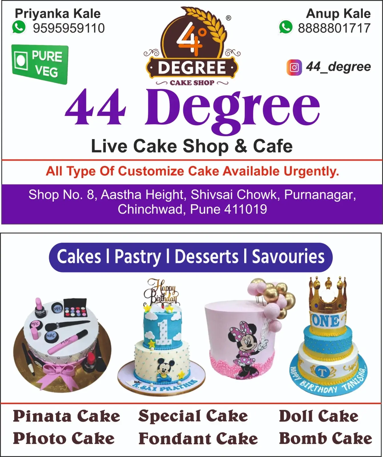 All Types of Customized Cakes Available Urgently PURE VEG Contact: