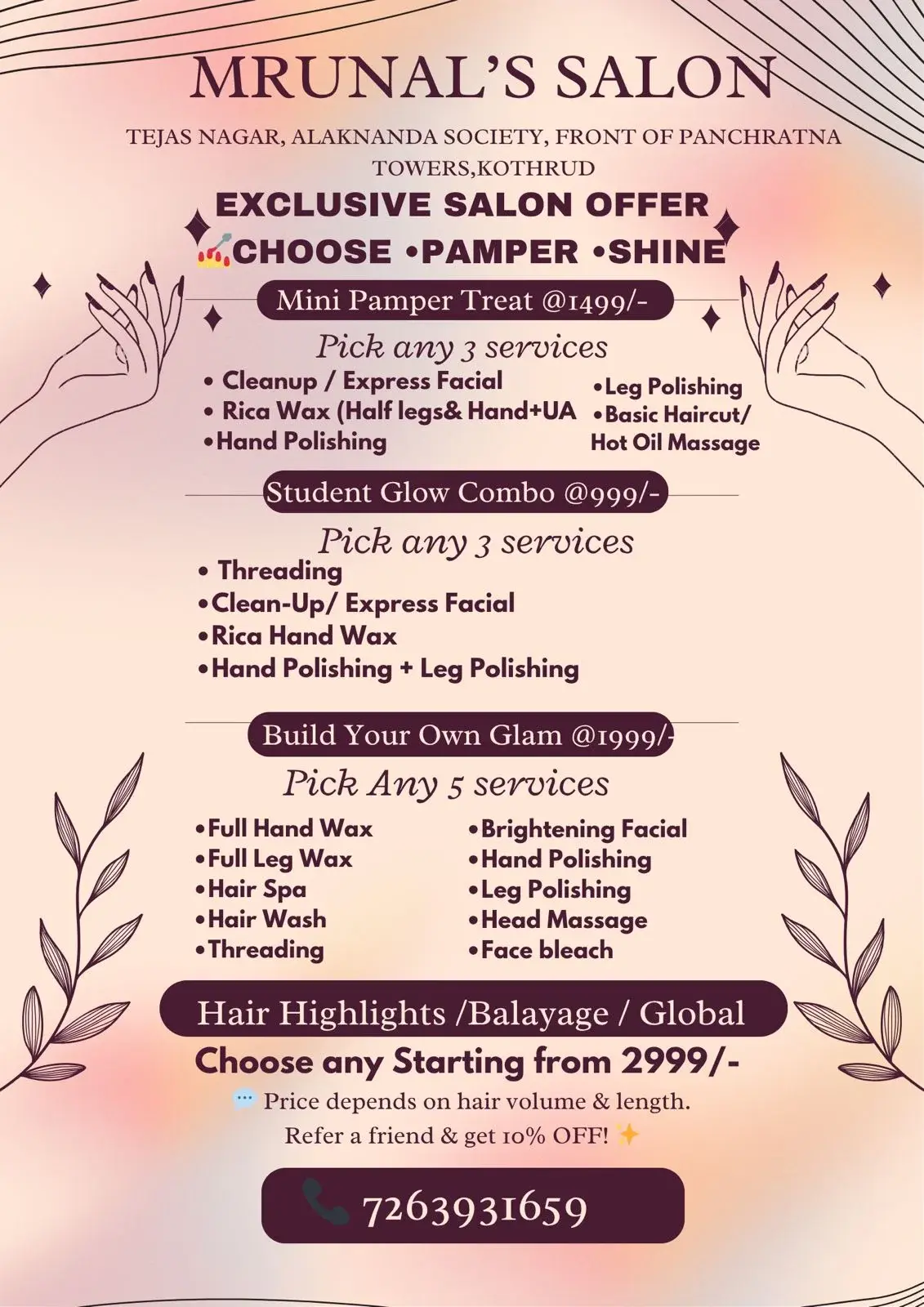We turn everyday beauty into something extraordinary 10% OFF ON ALL FACIAL Contact Us 9511294782